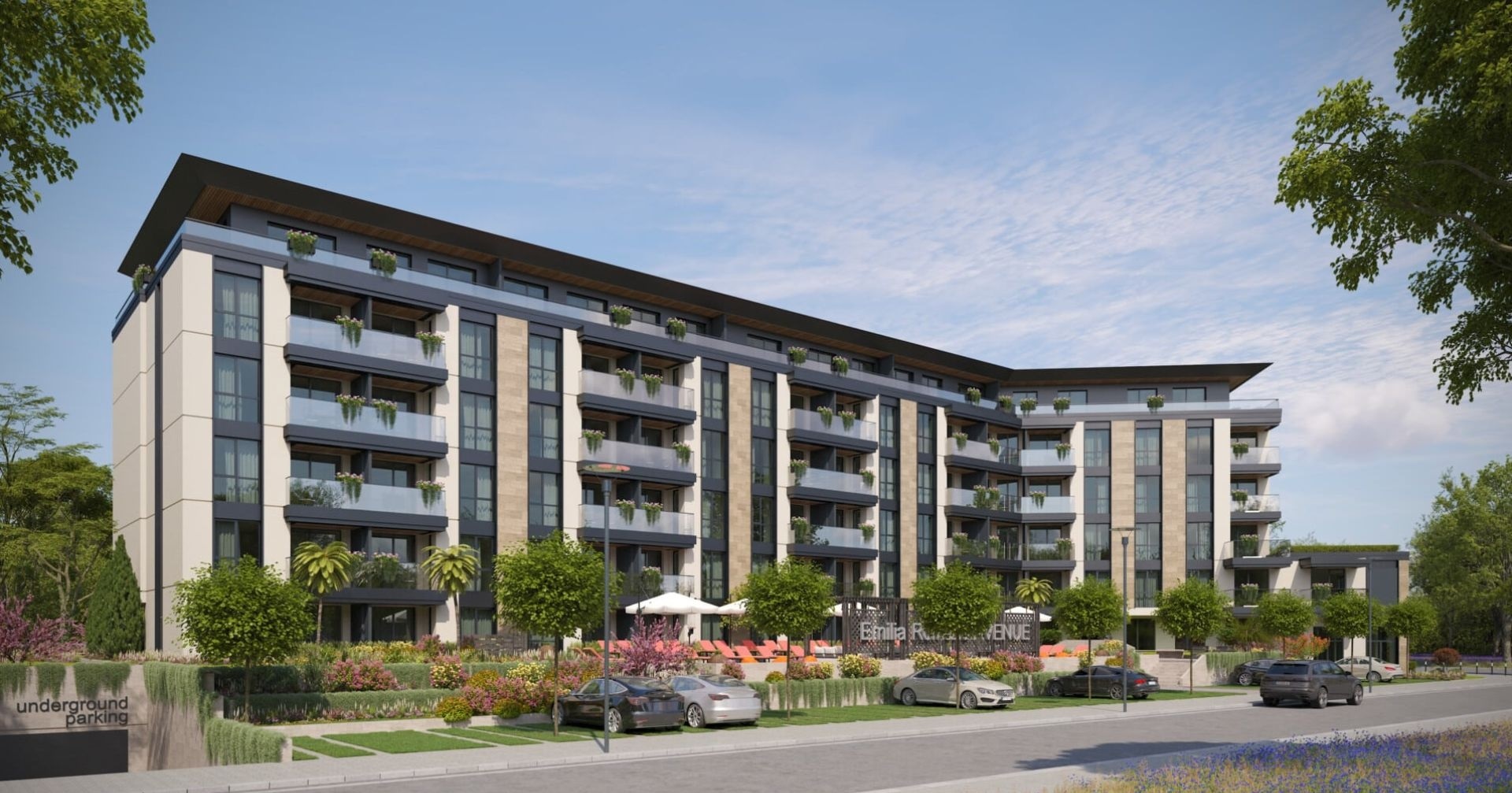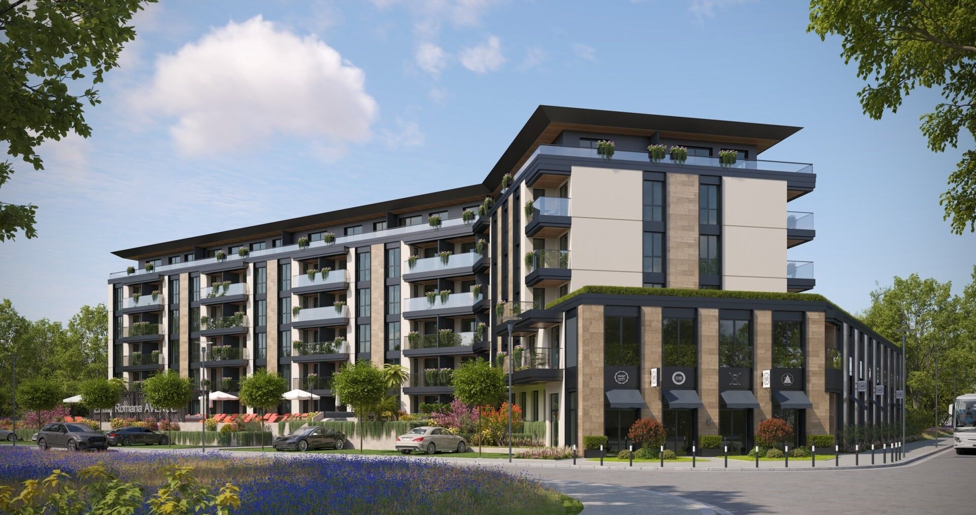 Emilia Romana Avenue — наш новый проект на Солнечном Береге, расположенный всего в 200 метрах от песчаных дюн и пляжа. На участке площадью 4020 м² запроектировано шестиэтажное здание современного архитектурного стиля с подземным уровнем (-1), где предусмотрены паркинг и кладовые, а на территории комплекса — открытые парковочные места.