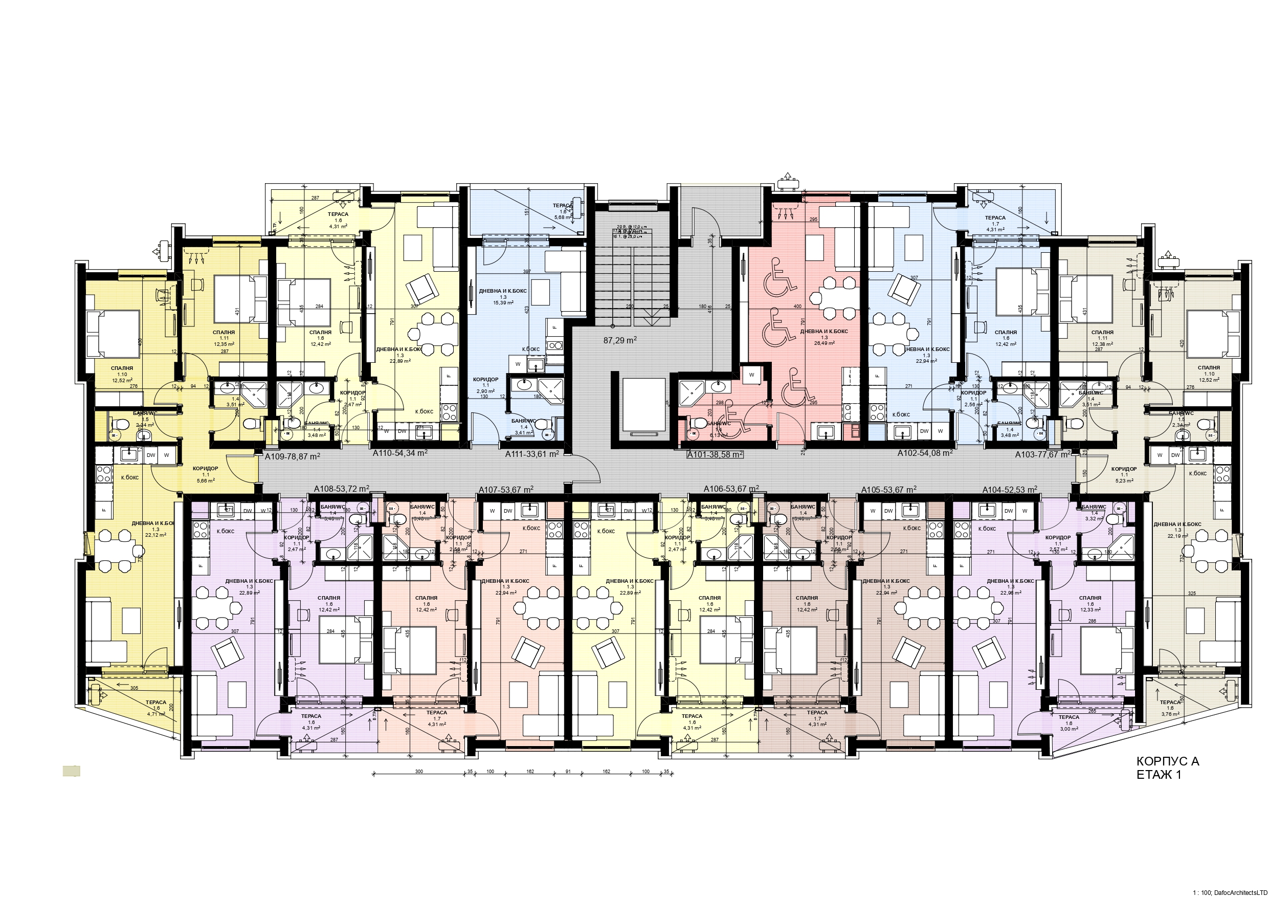 В комплексе предусмотрено 129 квартир с различными планировками — студии, одно- и двухкомнатные апартаменты. Каждая квартира продумана до мелочей и имеет просторную террасу, создающую дополнительное пространство для отдыха. Разнообразие площадей и ориентаций позволяет подобрать оптимальный вариант для любых нужд.