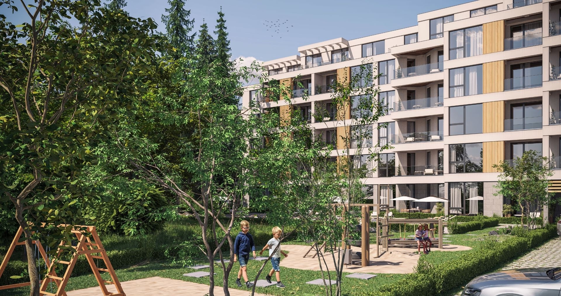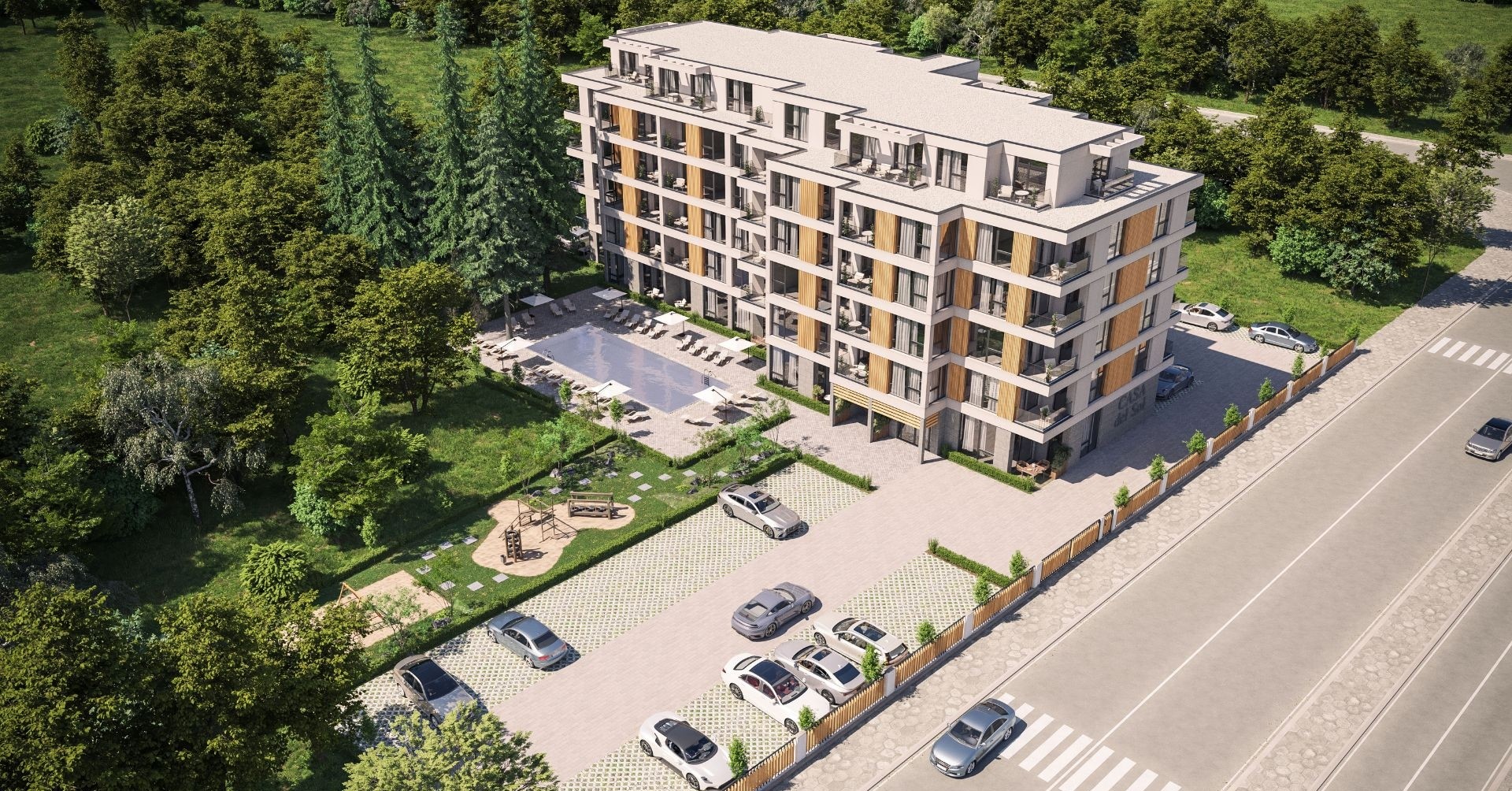 Здание выполнено в современном архитектурном стиле и предлагает квартиры различной площади — от 37 м² до 108 м². Апартаменты продаются с мебелью и оснащены системой отопления типа “климатик”, обеспечивающей комфортную температуру круглый год.