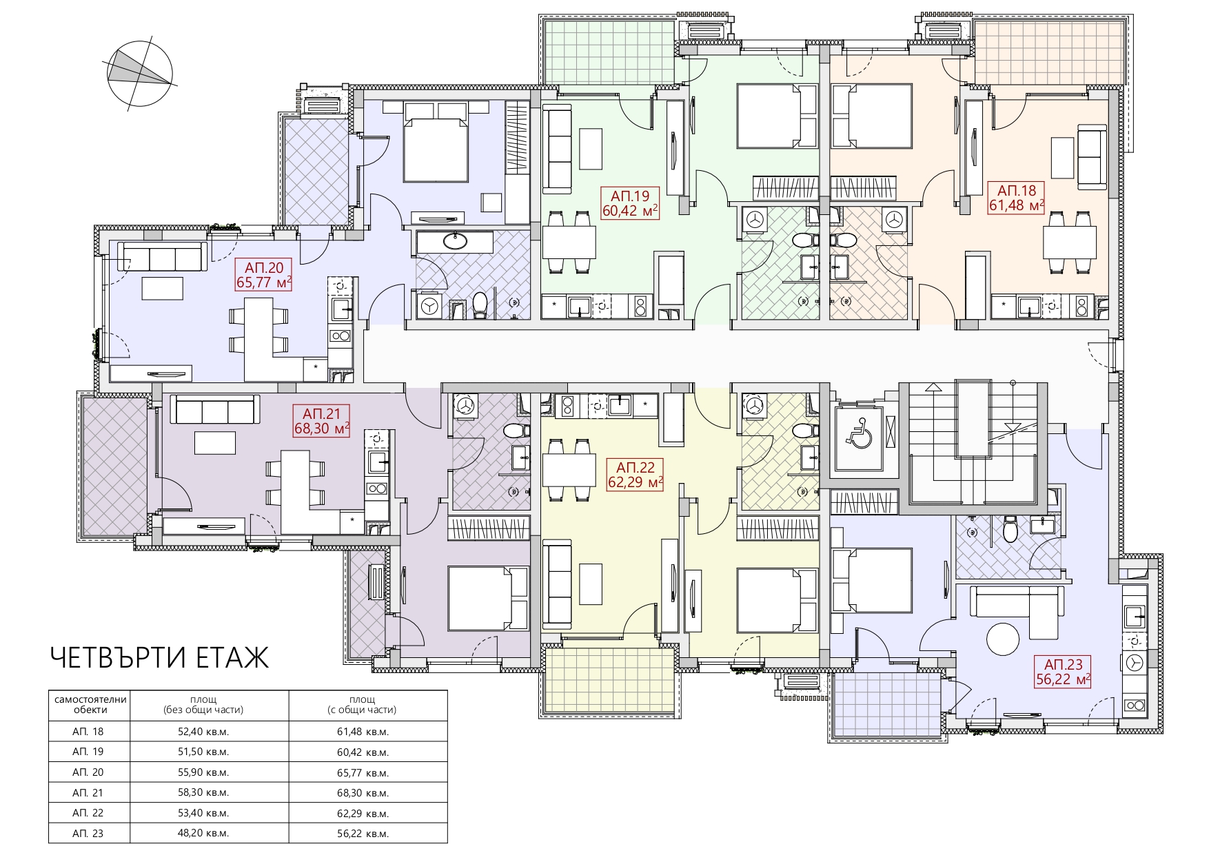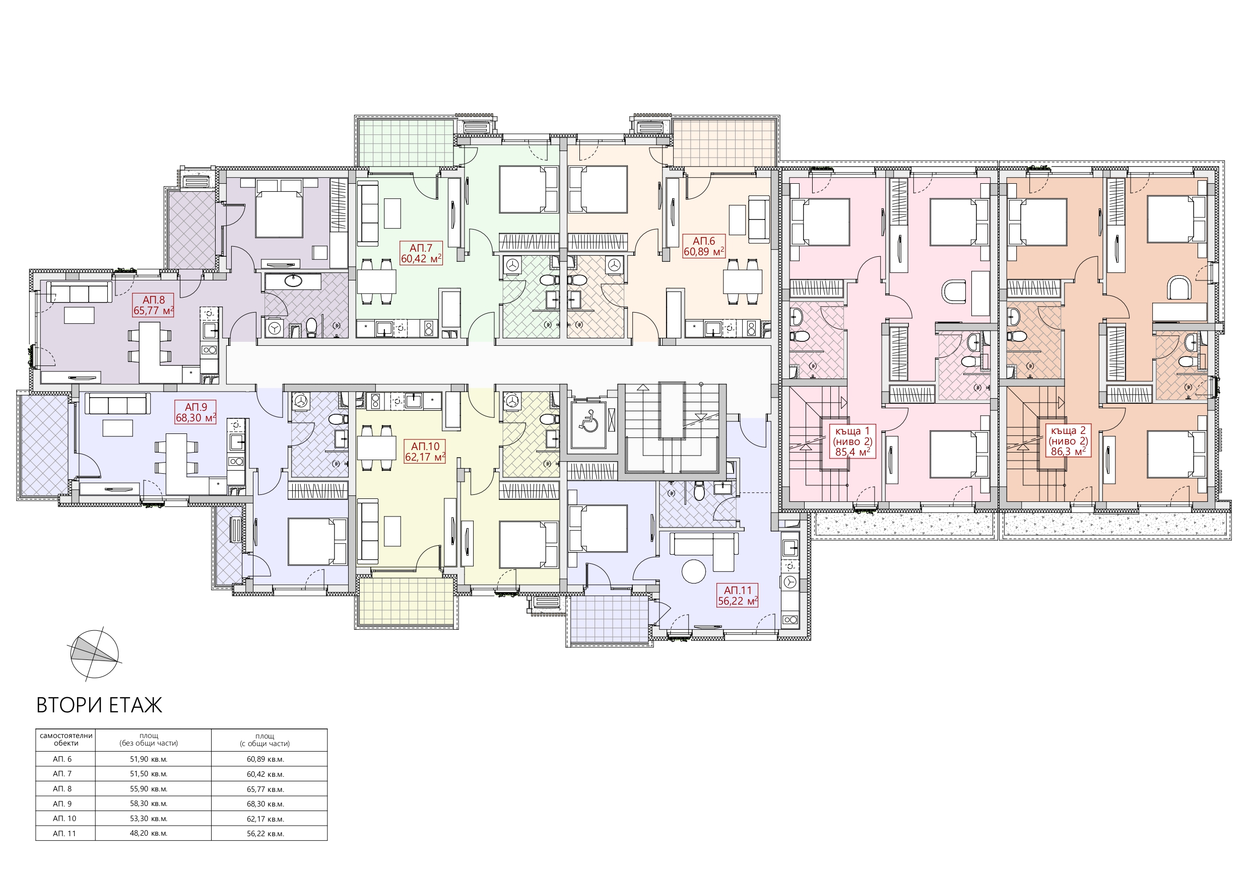 - Двухкомнатные апартаменты от 46 м² до 91 м²