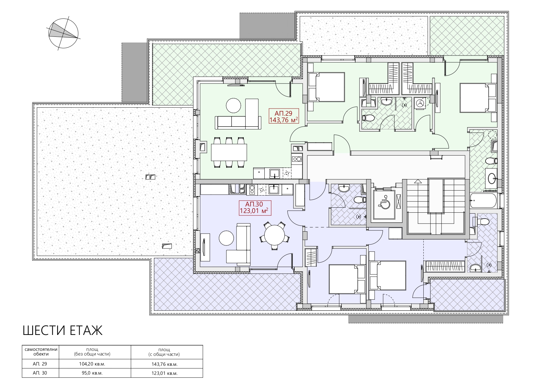 - Трёхкомнатные квартиры площадью от 94 м² до 105 м²