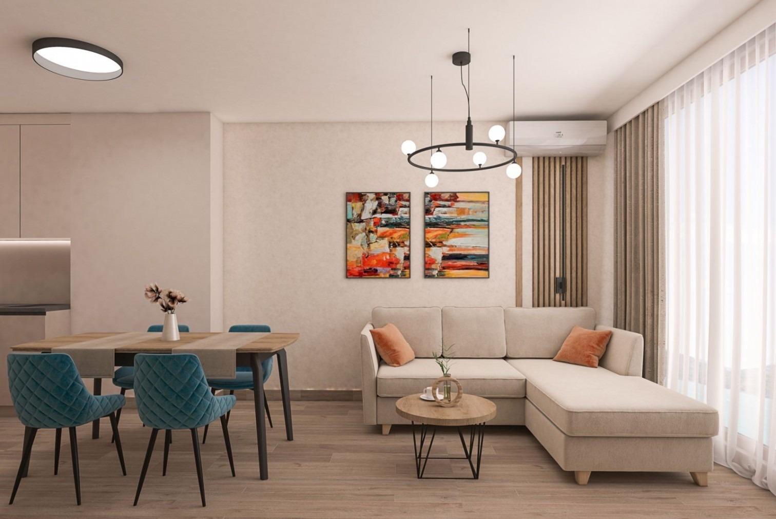 Из окон доступны виды на море, горы и озеленённые зоны (сад). Инфраструктура и удобства комплекса включают бассейн, лифт, наличие мебели и паркинг.