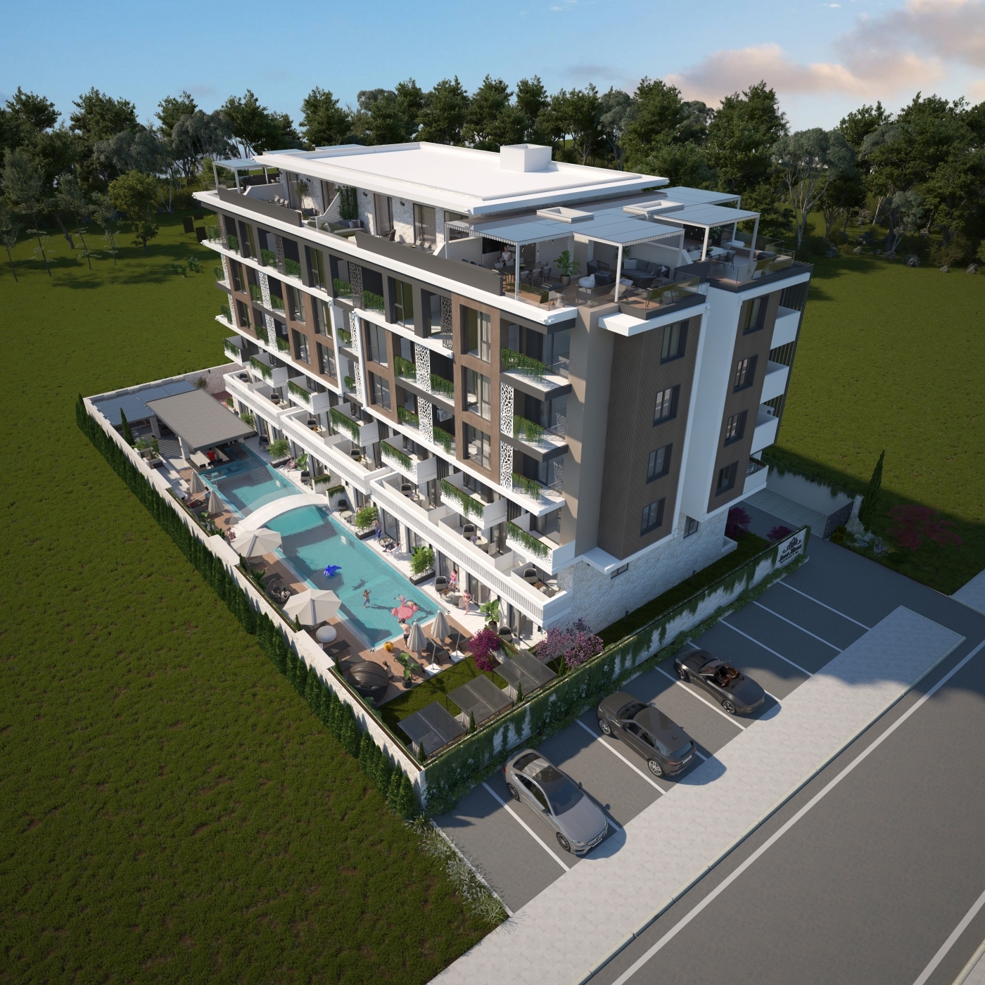 Здание имеет 6 этажей и включает разнообразные по планировкам апартаменты. Квартиры предлагаются с чистовой отделкой и готовы к меблировке. Установлена система отопления и охлаждения — климатик. Качественные материалы и внимание к деталям обеспечивают долговечность и комфорт жилья. В комплексе предусмотрены лифт и современные инженерные системы.
