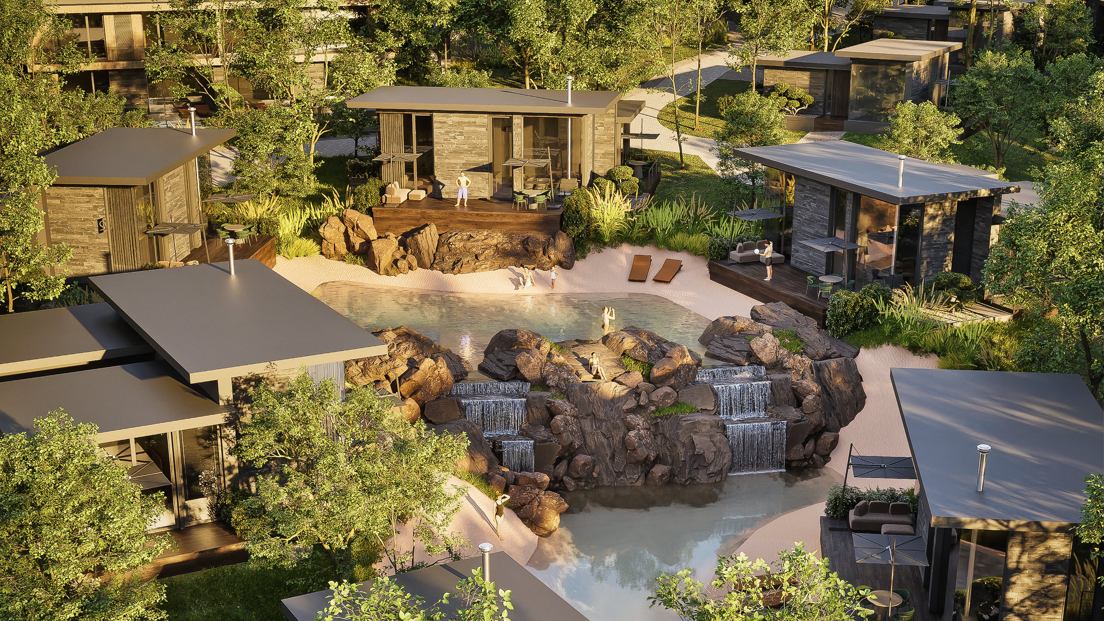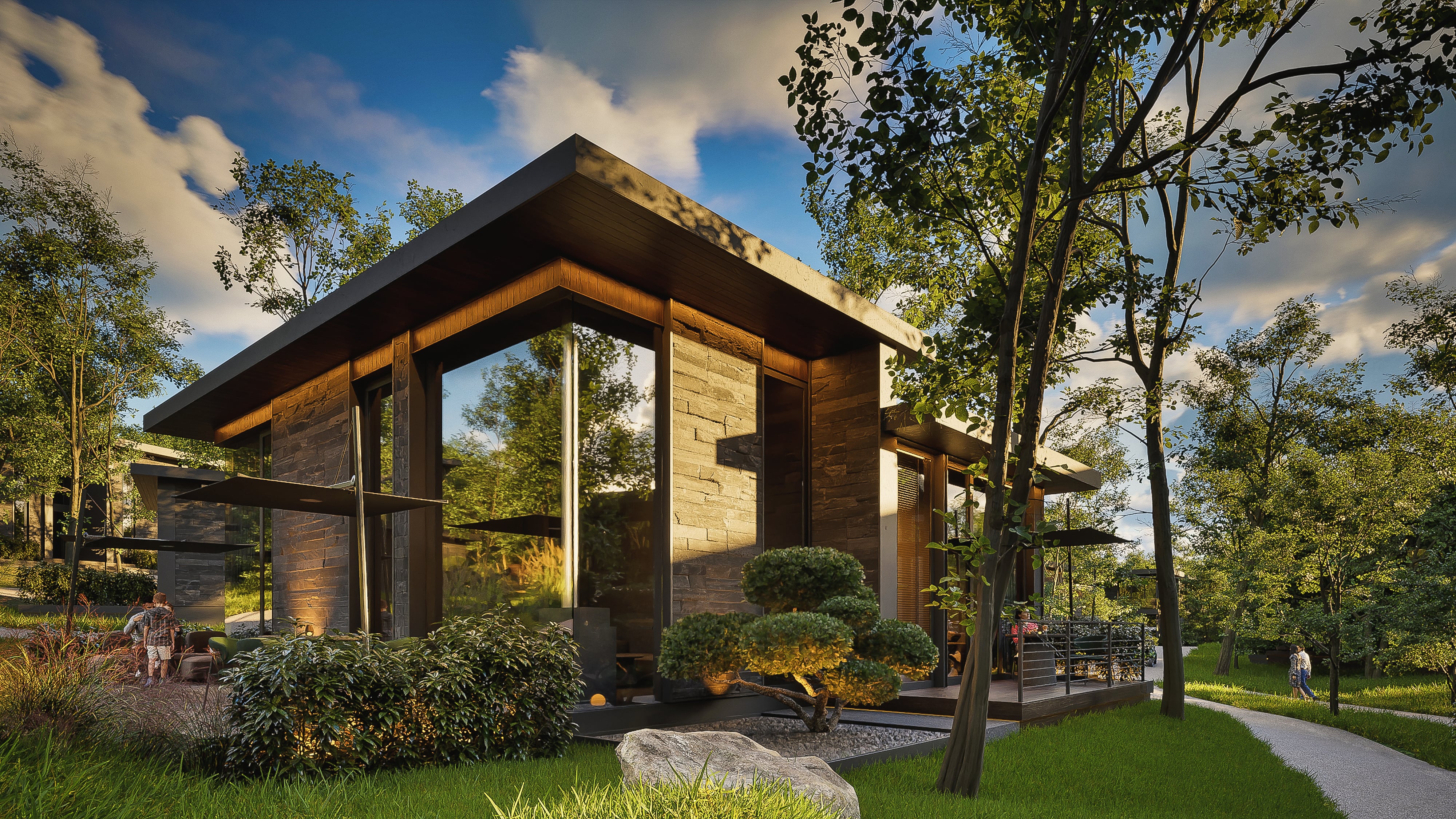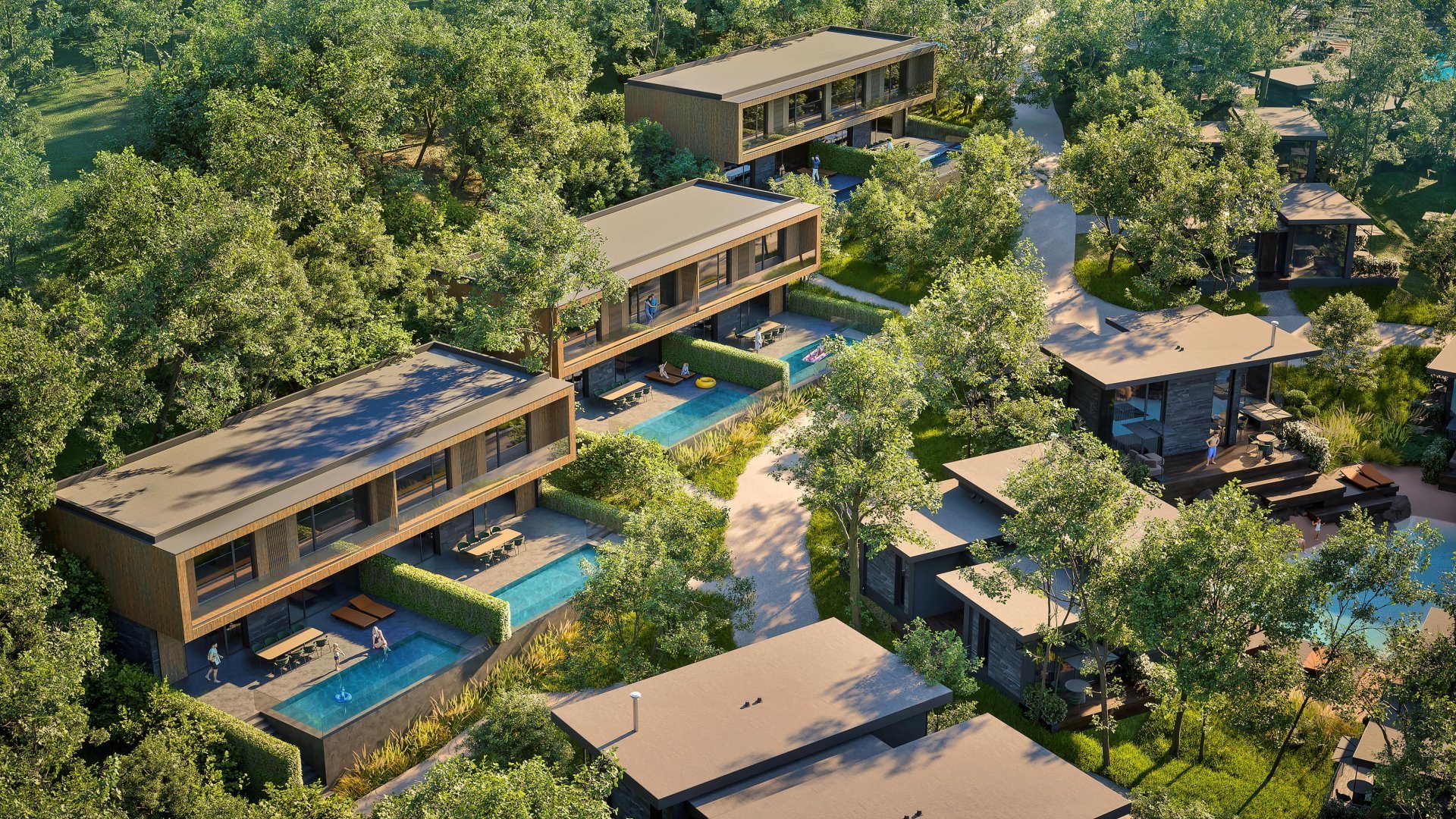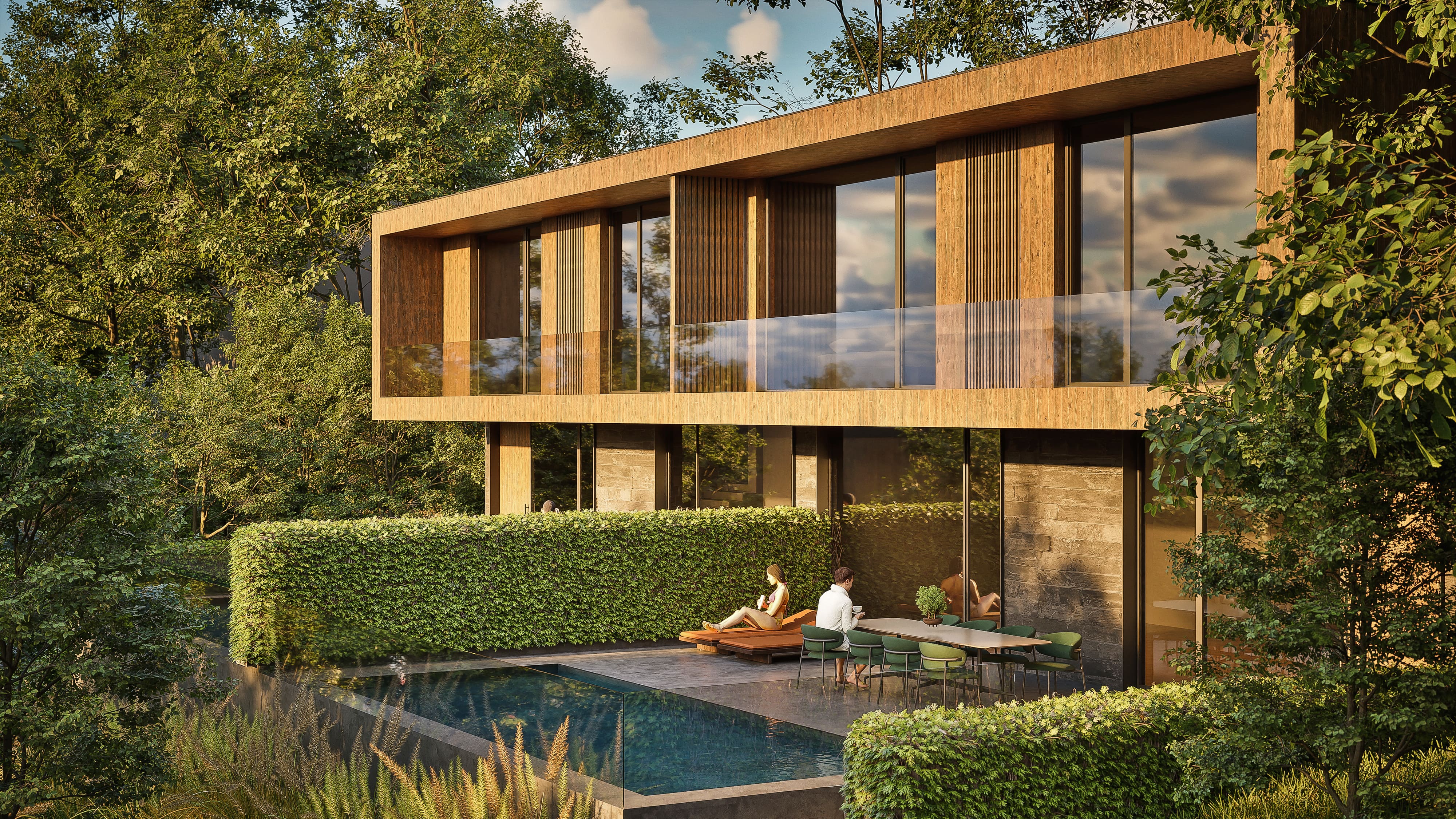 Каждая вилла в комплексе оснащена частным бассейном и просторной террасой, создающей атмосферу уединённого курортного отдыха. Из больших панорамных окон открываются виды на зелёные ландшафты и окрестности. Все дома выполнены в современном архитектурном стиле с акцентом на функциональность, энергоэффективность и эстетику.