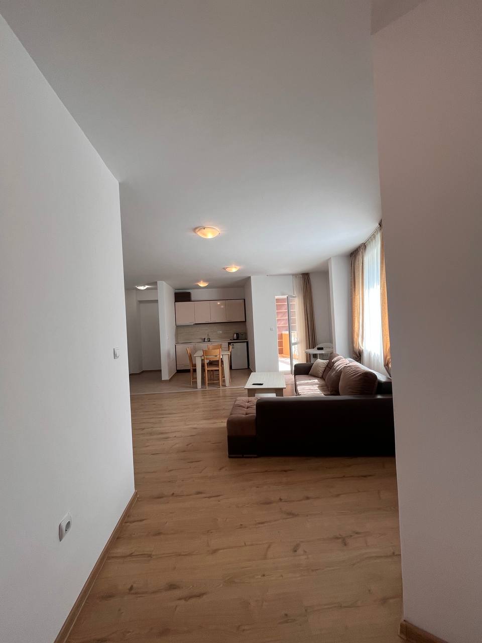 - Тип: двухкомнатная квартира (1 спальня + гостиная с кухней);